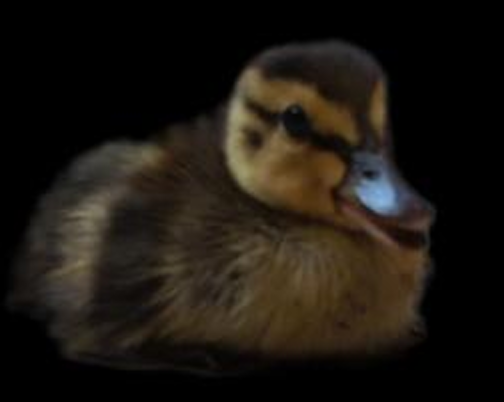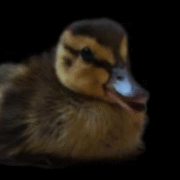 Het bleek een eendenkuiken te zijn, we konden het zonder enige moeite invangen, het diertje was al flink verzwakt. Ons plekje op de camping is te ver van het water voor zo een klein dierte en er was geen moeder eend te bekennen, ook niet binnen een paar honderd meter aan de oever van de rivier.